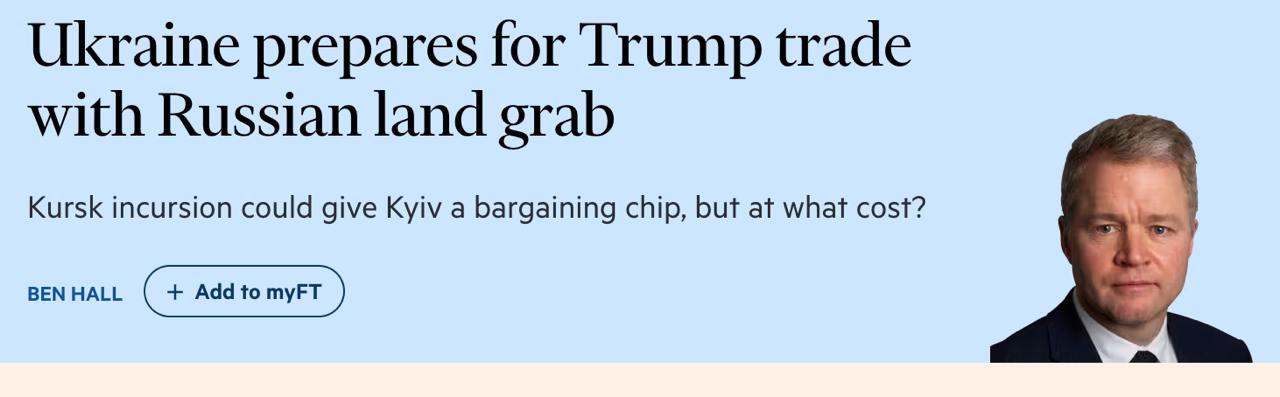 В противном случае, при нынешнем уровне западной военной поддержки и внутренней мобилизации ресурсов "у Киева нет жизнеспособного среднесрочного пути к победе". А до курского наступления не было козырей для усилений своей переговорной позиции, отмечает FT.