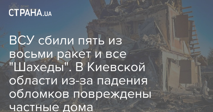 В Киевской области из-за падения обломков ракет и дронов пострадали 18 частных домов - два из них разрушены полностью.