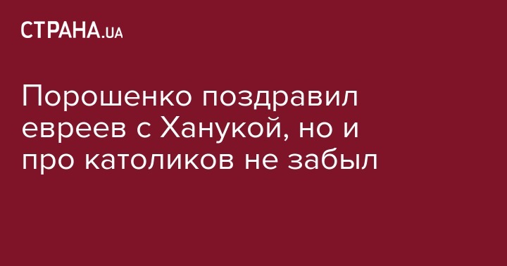 Сегодня, 24 декабря, президент Украины Петр Порошенко поздравил иудеев Украины с праздником Хануки, а христиан западного обряда - с Рождеством Христовым. Об этом глава государства написал на своей странице в Facebook.