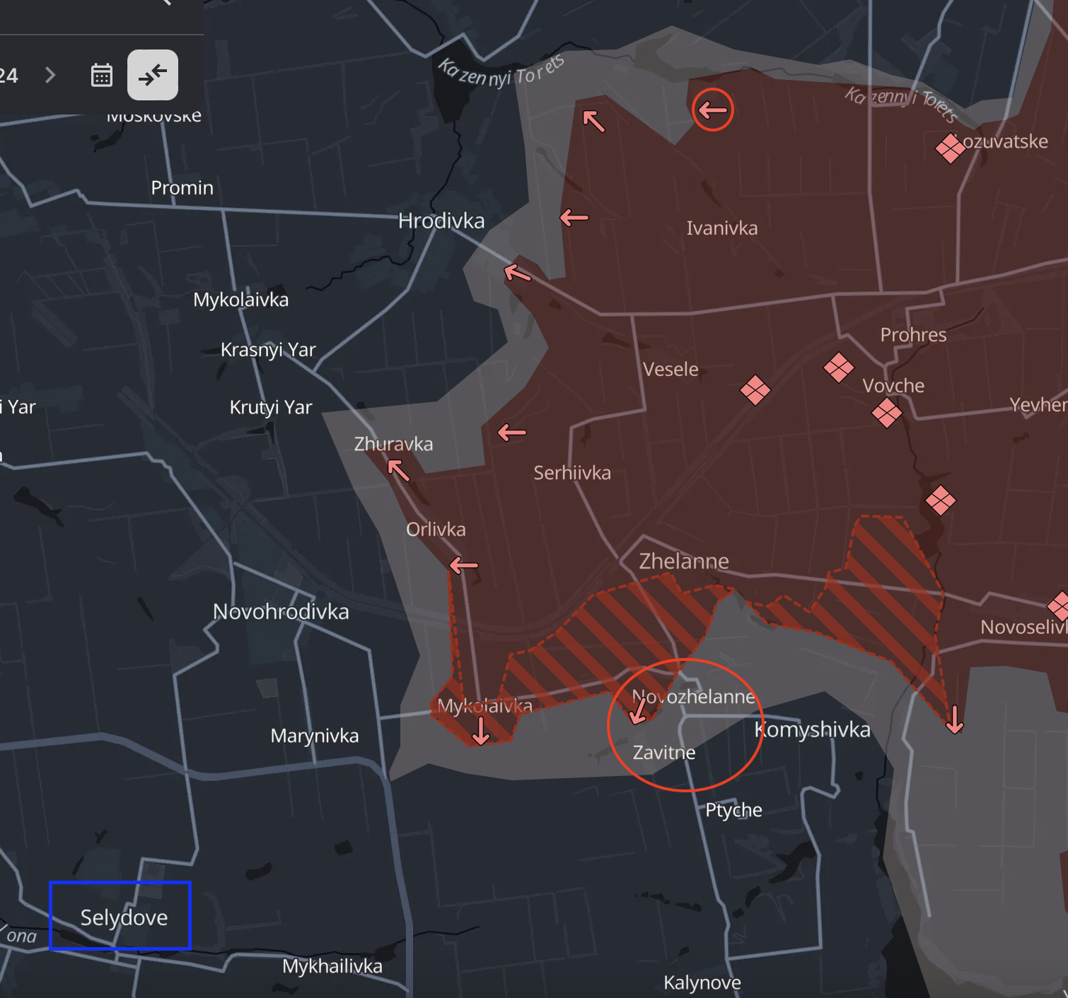Движение на Новогродовку и особенно Селидово подтверждает версию "Страны", что наступление РФ на Покровском направлении, которое сейчас идет больше не на запад, в сторону Мирнограда и Покровска, а на юго-запад, глобально в направлении Времьевского выступа, имеет целью обойти с запада вторую линию украинской обороны на всем Донецком фронте от Очеретино до Угледара.