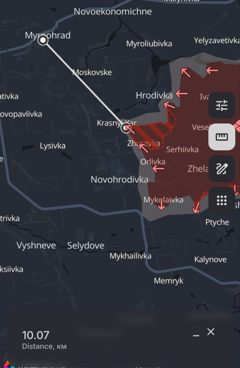 Мирноград на Покровском направлении находится в 8-10 километрах от линии фронта.