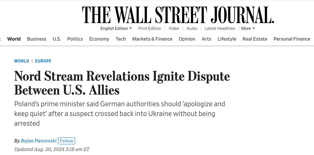Немецкие министры попросили своих польских коллег убедиться в том, что ордер будет выполнен, однако поляки отказались. Немцы уверены, что это был намеренный саботаж расследования подрыва газопровода.