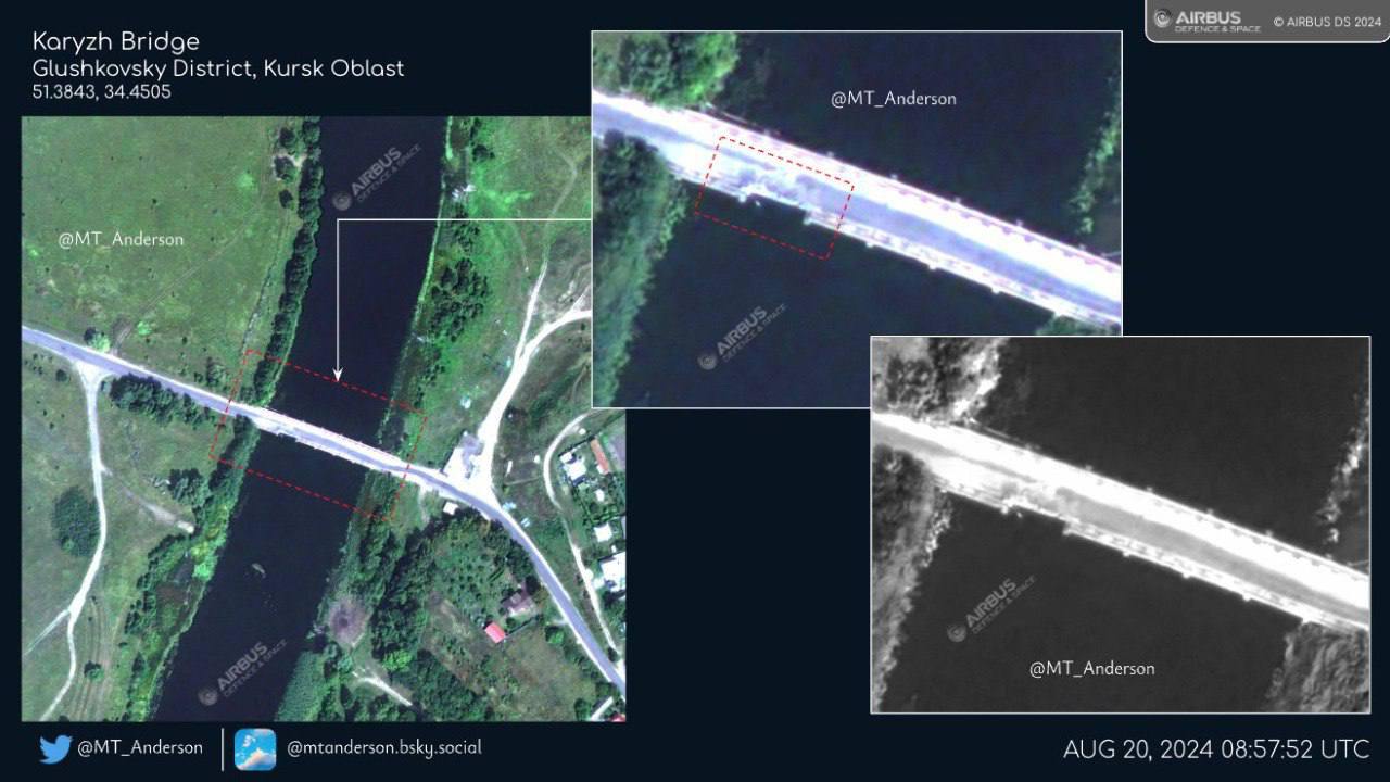 При этом, как стало известно сегодня, третий мост через реку Сейм в Курской области поврежден, но не полностью разрушен (вопреки тому, что ранее заявляли российские Z-паблики). Об этом свидетельствуют спутниковые фото.
