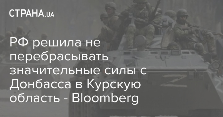 Россия решила не перебрасывать значительные силы с Донбасса в Курскую область. Об этом сообщает Bloomberg со ссылкой на источник, близкий к Кремлю.