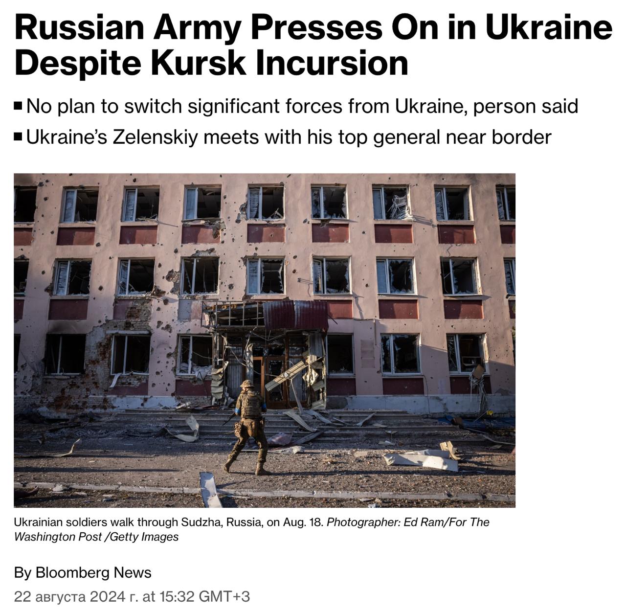 А The Wall Street Journal сообщал, что несмотря на успехи Украины в Курской области, для России возвращение этих территорий под свой контроль может быть "второстепенной задачей".