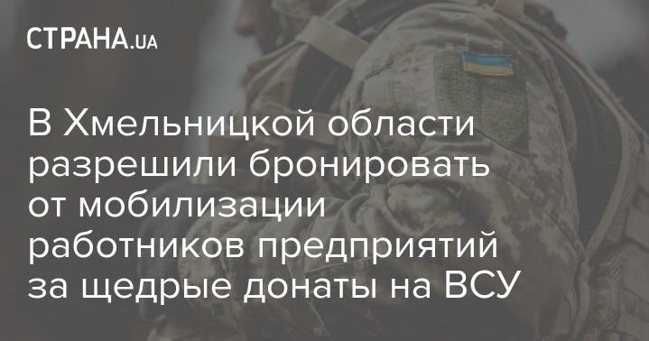 В Хмельницкой области бронь от мобилизации получат предприятия, которые жертвуют на ВСУ более 100 тысяч гривен.