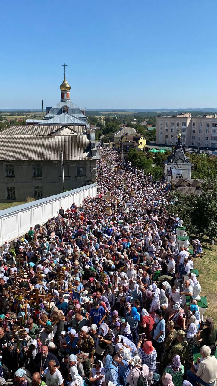 Сообщается, что собрались десятки тысяч верующих. Они пришли помолиться иконе Почаевской Богоматери за мир в Украине.