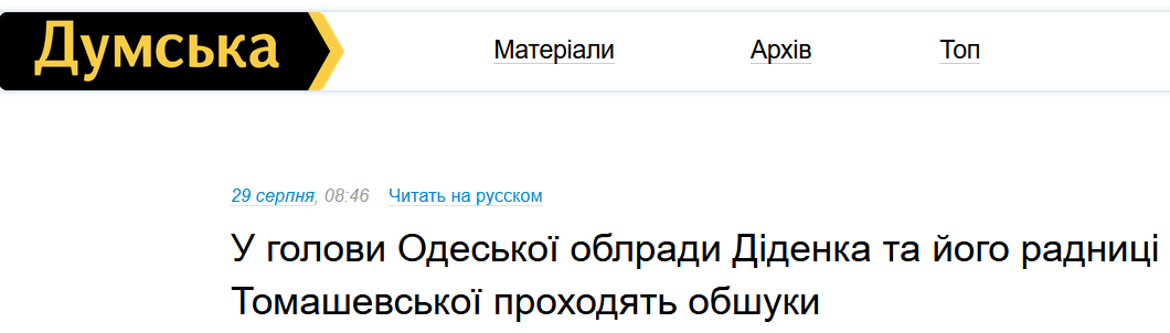 Национальное антикоррупционное бюро Украины (НАБУ) проводит обыски у высокопоставленных "Слуг народа" Одессы: главы областного совета Григория Диденко и депутата районного совета Лилии Томашевской.