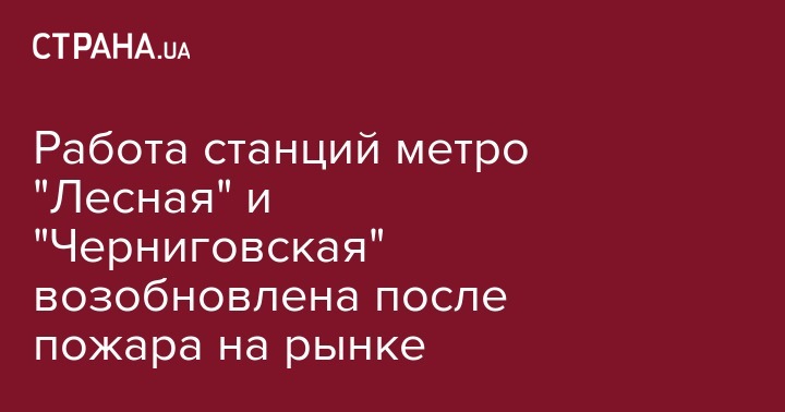 На станциях, закрывавшихся в связи с пожаром на складах в районе станции метрополитена "Лесная" на восточной окраине Киева, движение поездов в настоящее время восстановлено.