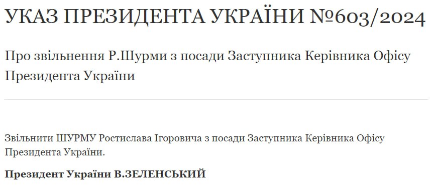 Ростислав Шурма уволен с поста заместителя главы Офиса президента.