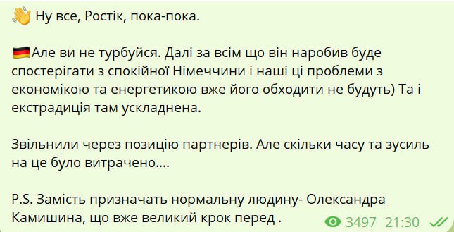 Как мы писали, сегодня Камышин подал в Верховную Раду заявление об увольнении. Кроме него заявления также написали министр юстиции Денис Малюська и министр защиты окружающей среды и природных ресурсов Руслан Стрелец.