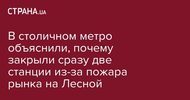 Как сообщала "Страна", пресс-секретарь киевского Метрополитена Наталья Макогон пояснила, что от огня пострадала только станция "Лесная", а "Черниговскую" закрыли, поскольку там нет возможности вернуть поезда в обратном направлении. Поэтому поезда шли только до "Дарницы".