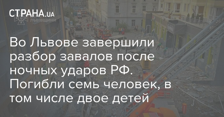 Завершены аварийно-спасательные работы после утреннего обстрела Львова. Погибли семь человек, среди них двое детей в возрасте 7 и 14 лет. Еще 53 человека получили ранения различной степени тяжести.
