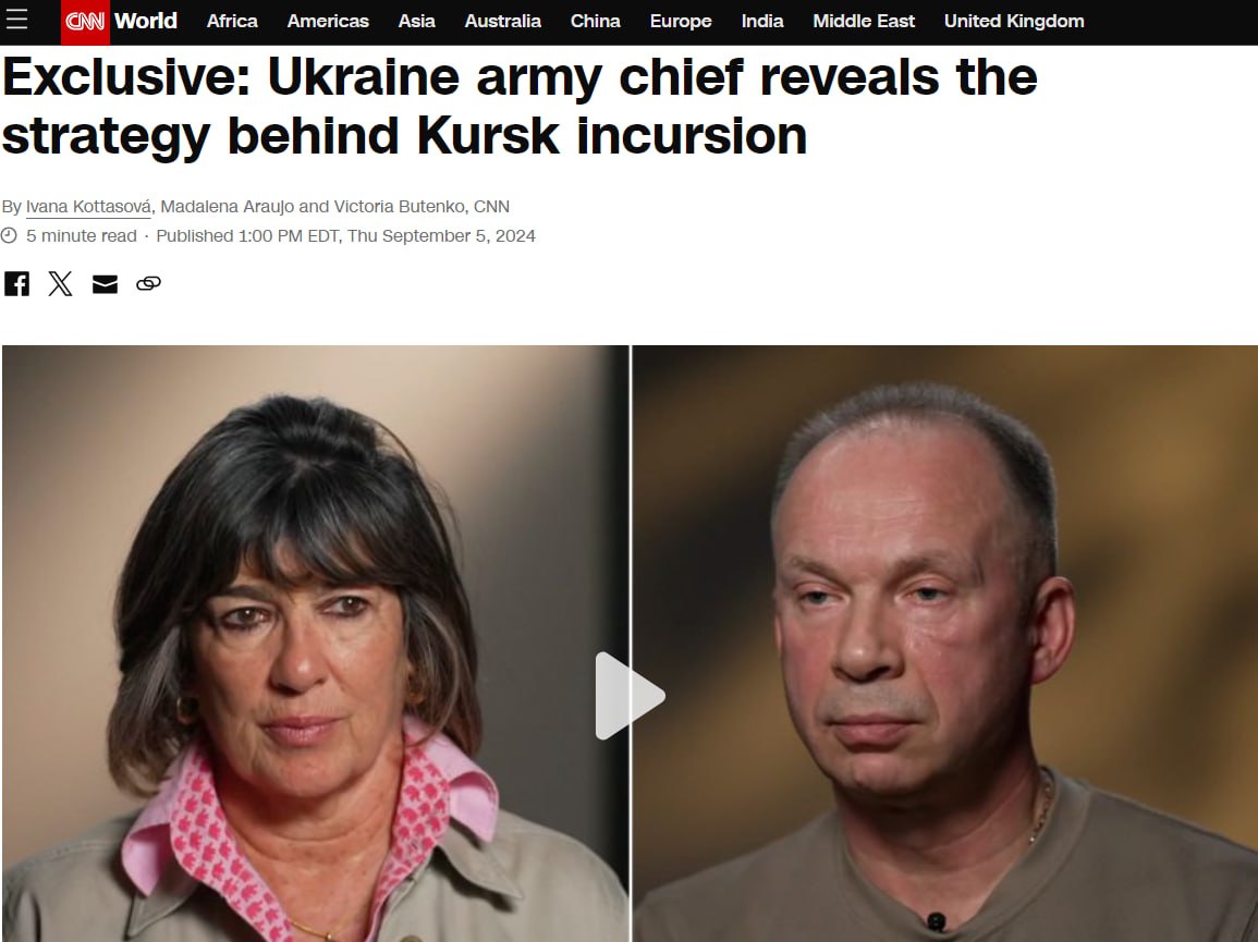 – Сырский изложил основные цели операции: не дать России использовать Курск в качестве плацдарма для нового наступления, отвлечь силы Москвы из других районов, создать зону безопасности и предотвратить трансграничные обстрелы гражданских объектов, взять военнопленных и поднять моральный дух украинских войск и нации в целом;
