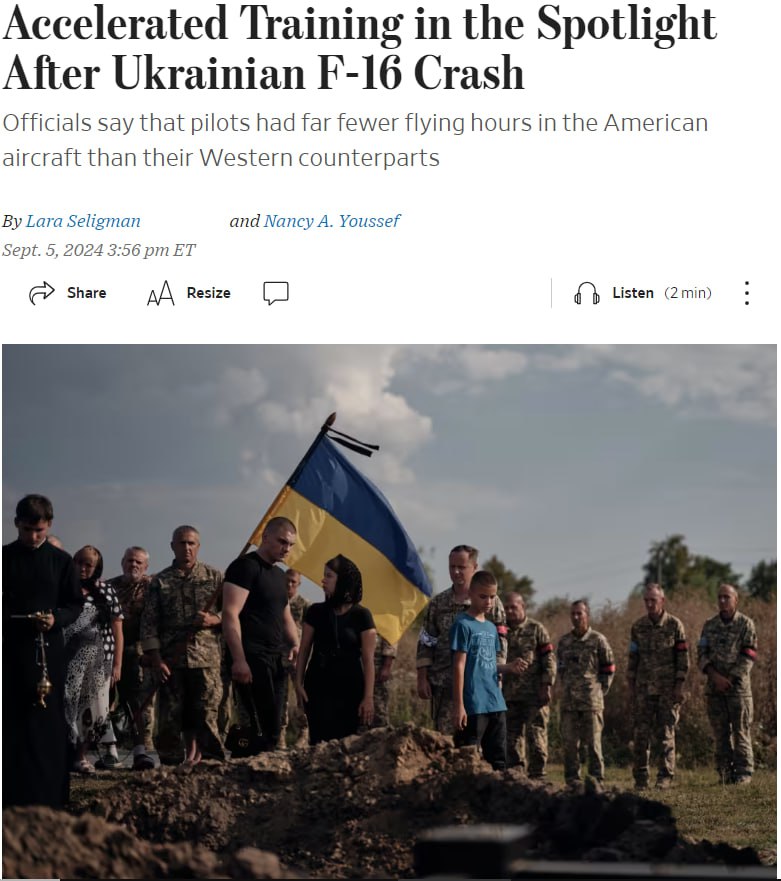 Издание со ссылкой на чиновника пишет, что российская ракета взорвалась возле самолета F-16 незадолго до того, как он скрылся с радаров. Взрыв мог его повредить или заставить пилота маневрировать слишком низко над землей, что привело к катастрофе.