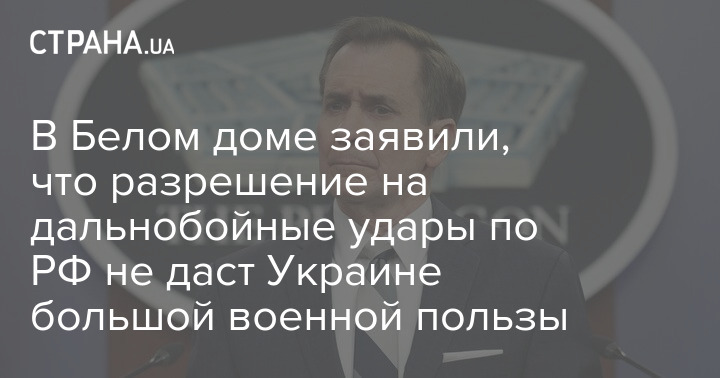 Координатор по стратегическим коммуникациям Совета нацбезопасности США Джон Кирби заявил, что разрешение на дальнобойные удары по территории РФ не даст Украине большой военной пользы.