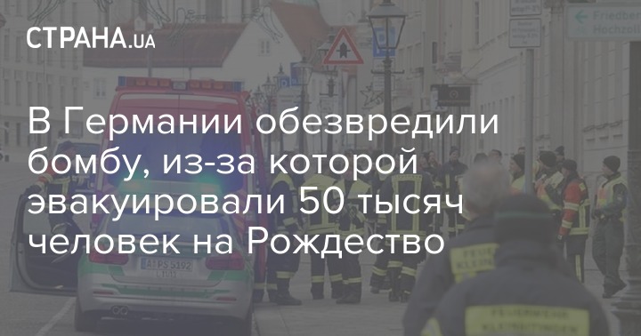 В немецком Аугсбурге обезвредили авиационную бомбу времен Второй Мировой войны, из-за которой эвакуировали более 50 000 человек. Об этом сообщает Deutsche Welle