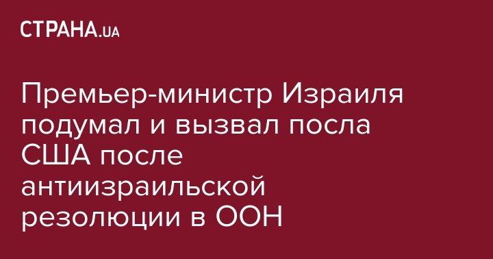 Премьер-министр и министр иностранных дел Израиля Биньямин Нетаньяху распорядился вызвать посла США на личную беседу после того, как Совбез ООН утвердил резолюцию о запрете на строительство израильских поселений в Палестине. Об этом сообщает ВВС.