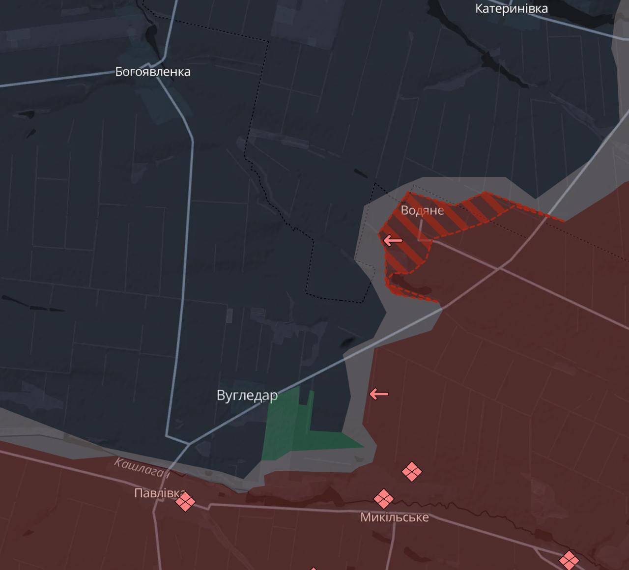 Российские войска захватили Водяное к северо-востоку от Угледара.