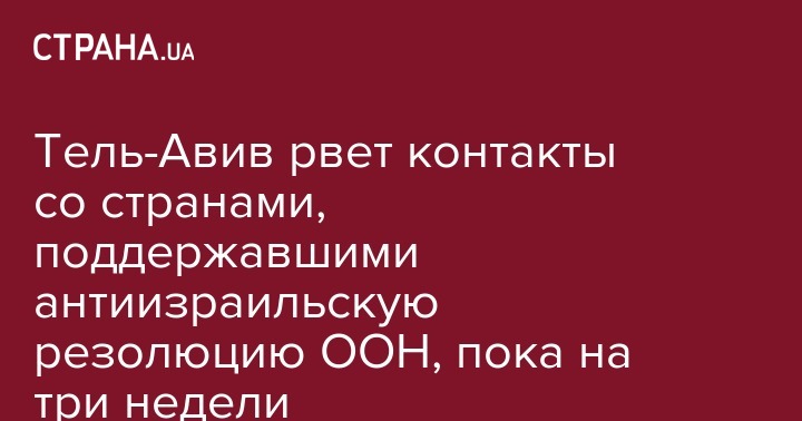 По данным СМИ, глава правительства Израиля Биньямин Нетаньяху дал указание всем министрам не посещать страны, поддержавшие антиизраильскую резолюцию в Совете безопасности ООН и не встречаться с министрами из этих стран, в том числе с украинской делегацией. Пока такой запрет введен на ближайшие три недели.