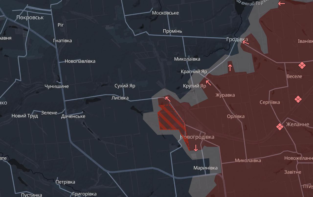 Под Покровском они атаковали на северо-запад от Новогродовки в сторону Лысовки. То есть, телеграм-канал подтвердил вчерашние заявления украинских военных об атаке на Лысовку.