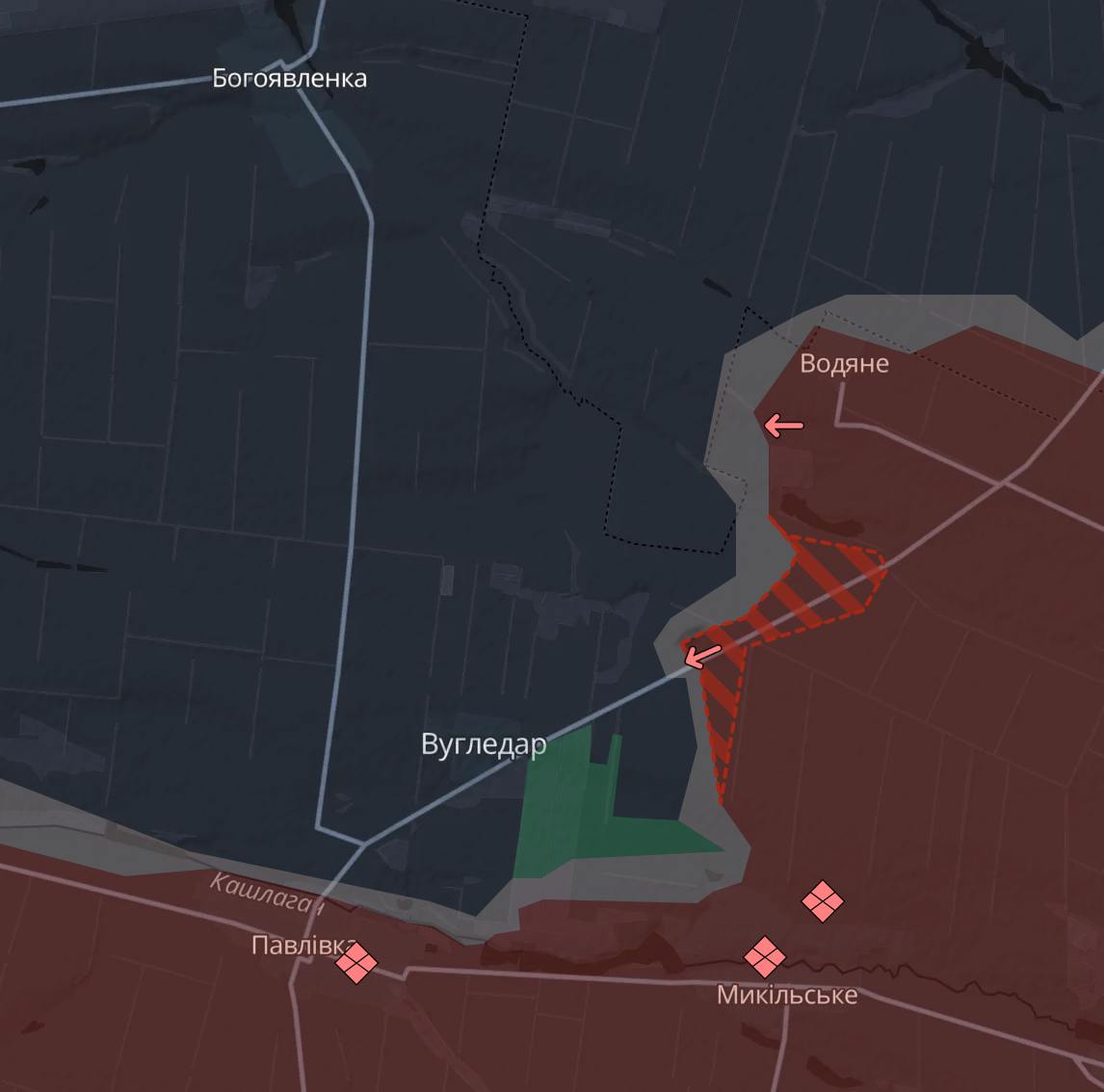 А под Угледаром продвинулись южнее недавно захваченного Водяного, подходя к Угледару с северо-востока.
