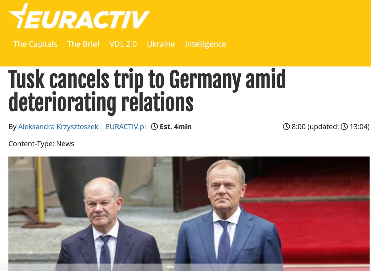 По данным источников издания, причиной ухудшения отношений стал скандал с "Северными потоками". Берлин считает, что Варшава помогла сбежать в Украину подозреваемому в подрыве трубопровода.