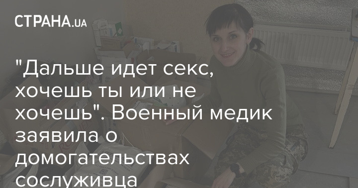 Военный медик по имени Оксана рассказала о сексуальном домогательстве к ней со стороны военного водителя Сергея и давлении командования в связи с этой историей.