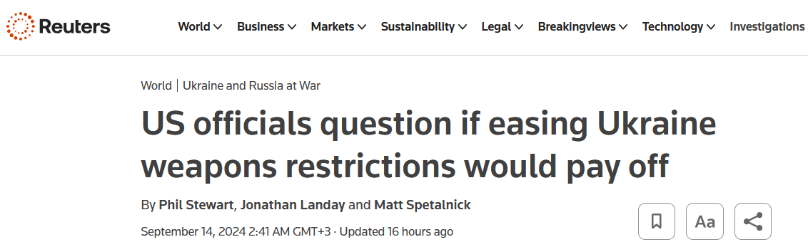 При этом некоторые американские чиновники настроены скептически относительно перспектив ударов своим оружием. Они отмечают, что Украина и без того использует дроны по целям в глубине российской территории, а западные ракеты "очень дорогие и их количество ограничено, чтобы изменить динамику боев".