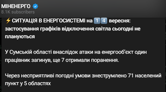 "В Сумской области в результате обстрела территории энергообъекта было повреждено оборудование и укрытие, обесточено несколько подстанций. В результате атаки погиб работник предприятия - 54-летний водитель, еще 7 работников получили ранения и были госпитализированы", - говорится в сообщении.