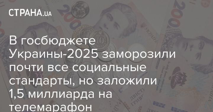 В госбюджете Украины-2025 заморозили почти все социальные стандарты, но заложили 1,5 миллиарда на телемарафон