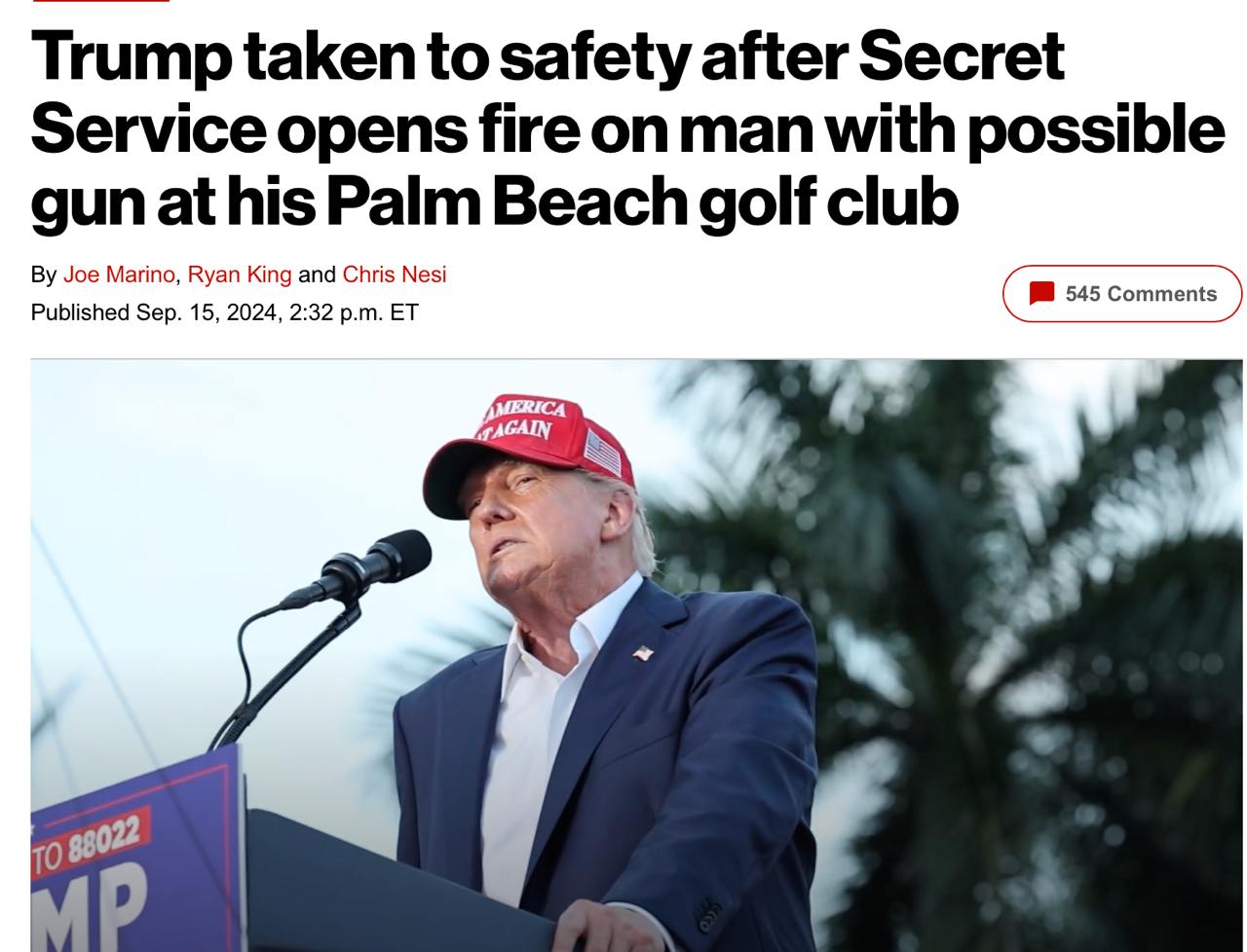 Неподалеку от Дональда Трампа раздались выстрелы, когда он находился в своем гольф-клубе в Уэст-Палм-Бич (штат Флорида).