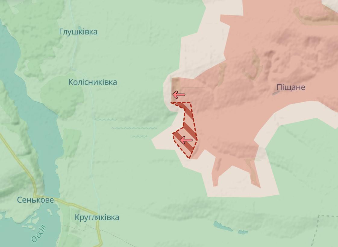 "Если ничего не поменяется, а я пока не вижу к тому каких-то оснований, противник, очевидно, в течение какого-то ближайшего времени сумеет выйти на левый берег реки Оскол на отрезке Глушковка - Кругляковка и таким образом разрежет наш плацдарм на р.Оскол на две части: меньшую, северную (Купянскую) и большую, южную (Боровая)", - комментирует Машовец.