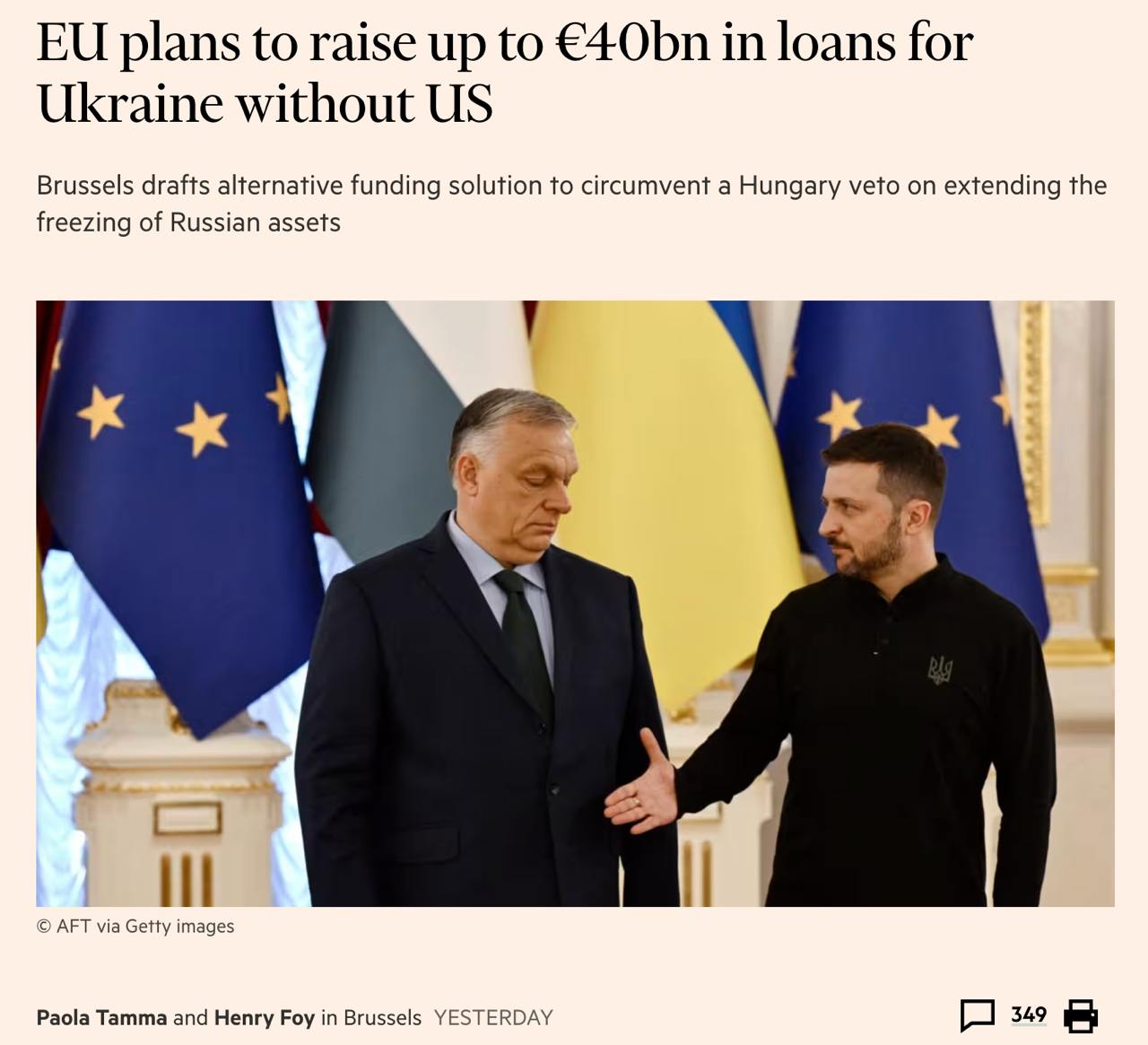 Евросоюз готовится предоставить Украине 20-40 млрд евро новых кредитов до конца года - Financial Times