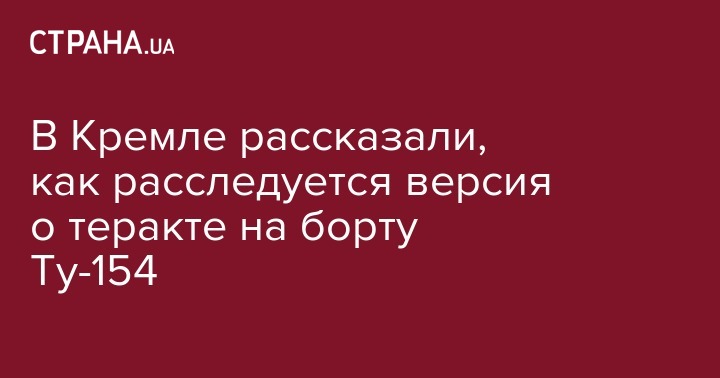 Сегодня, 26 декабря, пресс-секретарь президента России Дмитрий Песков заявил, что версия о теракте на борту разбившегося самолета Ту-154 пока не получает какого-либо развития. Об этом передает передает РИА "Новости".