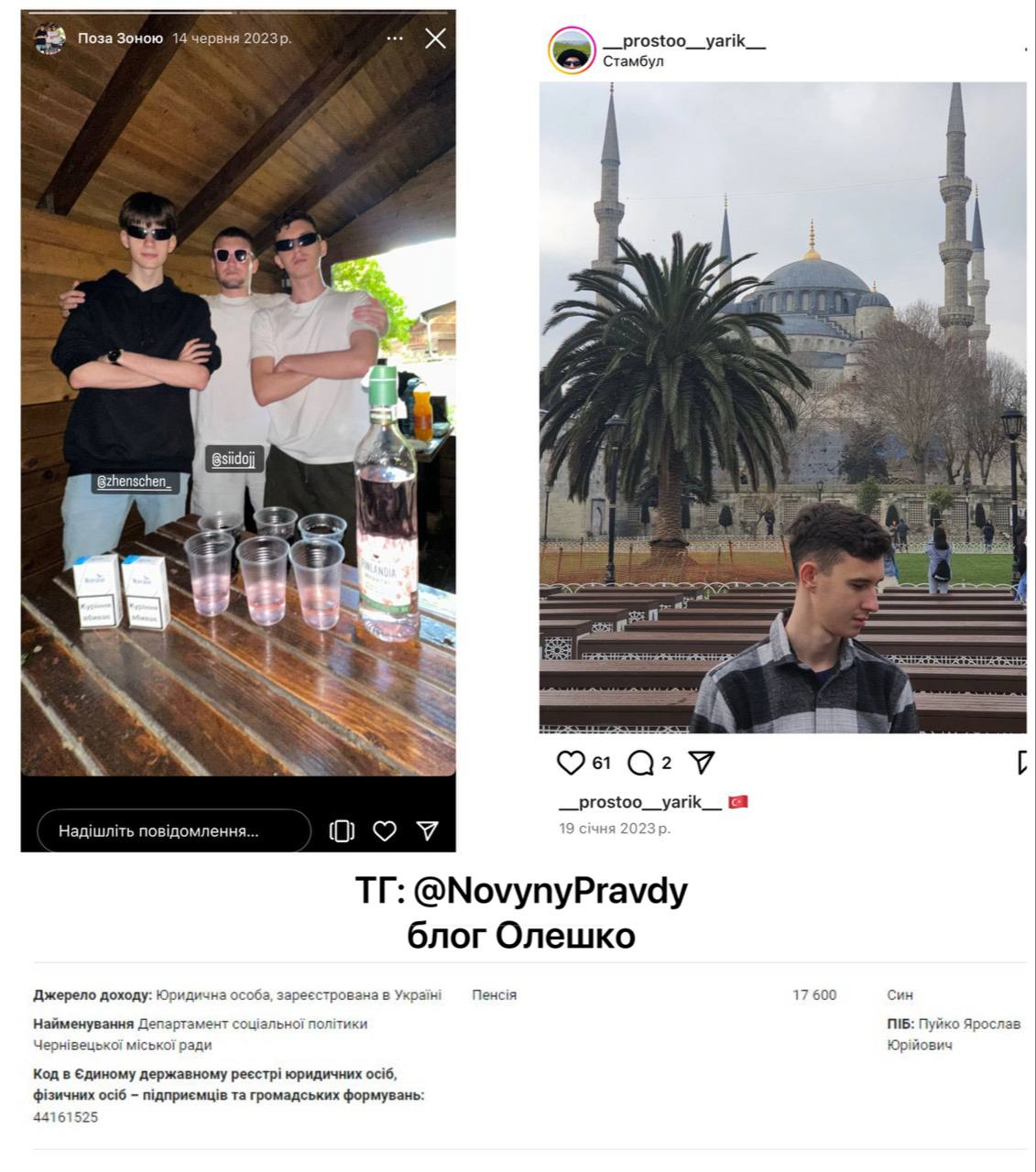 "Это удивительно, когда сын главы ТЦК начал ездить с дружбанами в Одессу на пьянку, только когда ты там главным стал (фото за 28 августа). До этого боялся? И как он в 2023 году, будучи совершеннолетним, уехал в Турцию на отдых?" – написал Олешко, обращаясь к Пуйко-старшему.