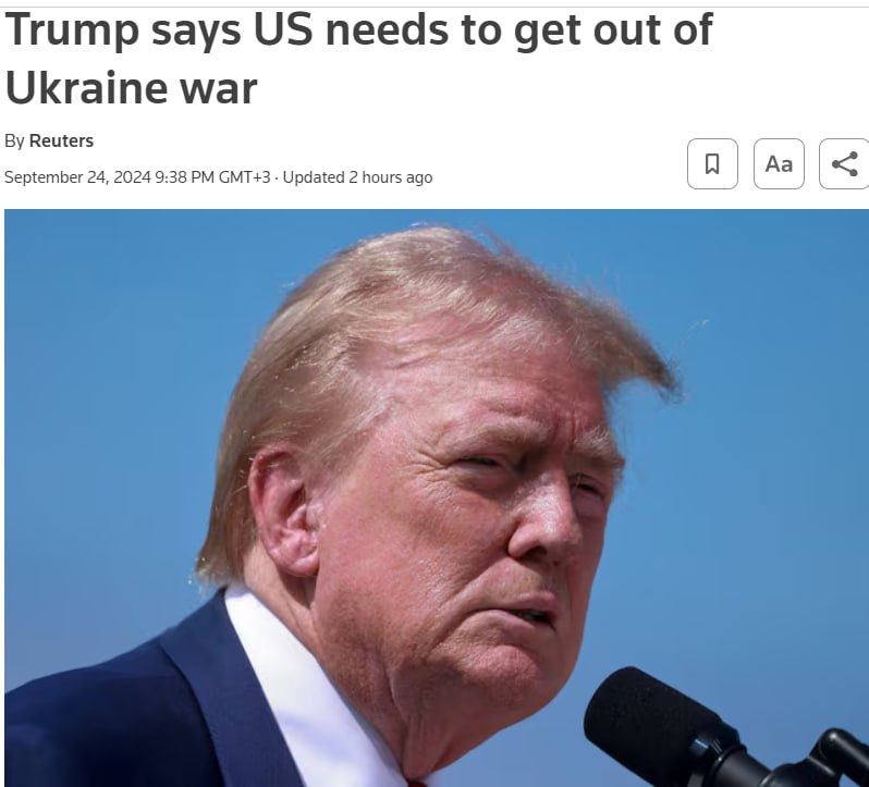 23.59 Трамп заявил, что с вовлечённостью США в войну в Украине нужно заканчивать, сообщает Reuters