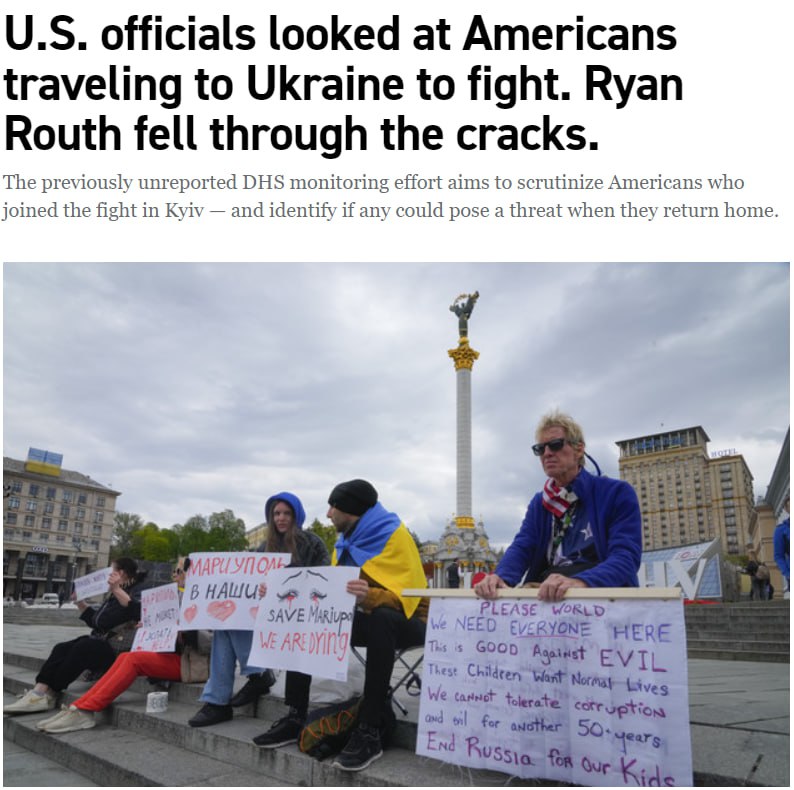 Издание сообщает, что спецслужбы США в 2022 году запустили программу слежения за американскими гражданами, отправлявшимися воевать на стороне Украины. Считалось, что те могут стать более склонными к насилию.
