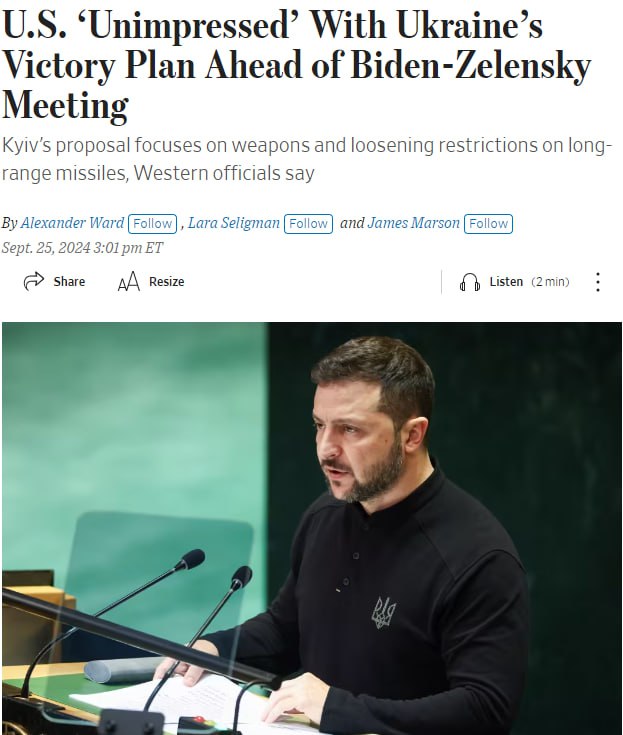 "Переупакованная просьба". США не впечатлены "планом победы" Зеленского - WSJ