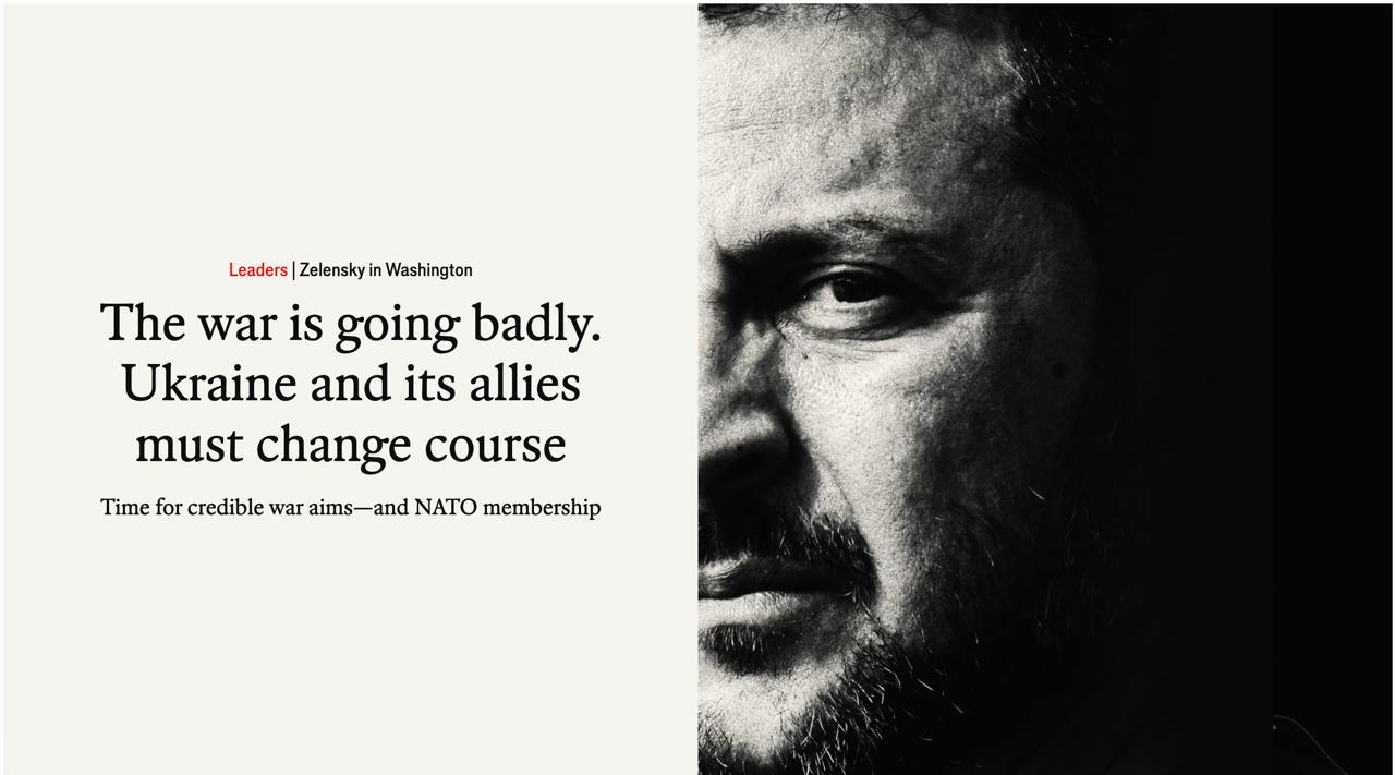 Также Economist призывает США дать Украине перспективу вступления в НАТО, но без захваченных Россией территорий и с обещанием не размещать иностранные войска в мирное время.