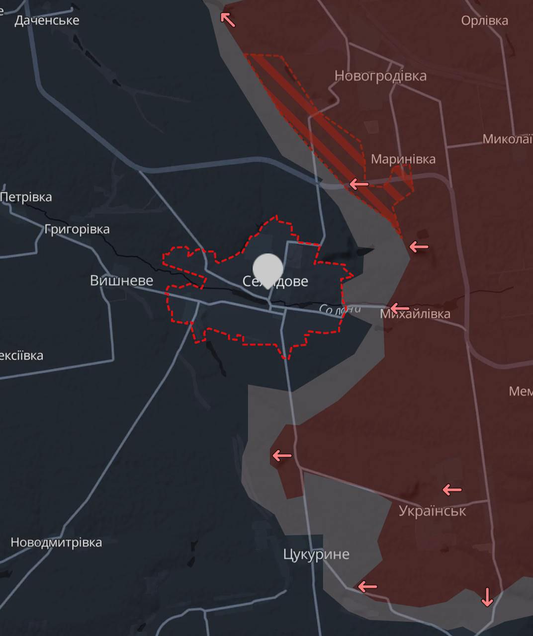 Сегодня Deep State сообщил о захвате села россиянами Мариновка и широкой полосы к юго-западу от Новогродовки. Все это направление на Селидово с северо-востока.
