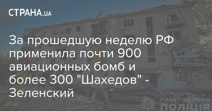 За прошедшую неделю РФ применила почти 900 авиационных бомб и более 300 "Шахедов" - Зеленский