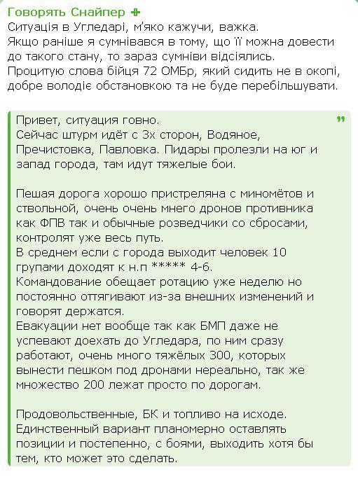 Ситуация в Угледаре очень тяжелая. Об этом пишет в своем телеграм-канале военный Станислав Бунятов. Он цитирует пост бойца 72-й ОМБр, который воюет на этом направлении.