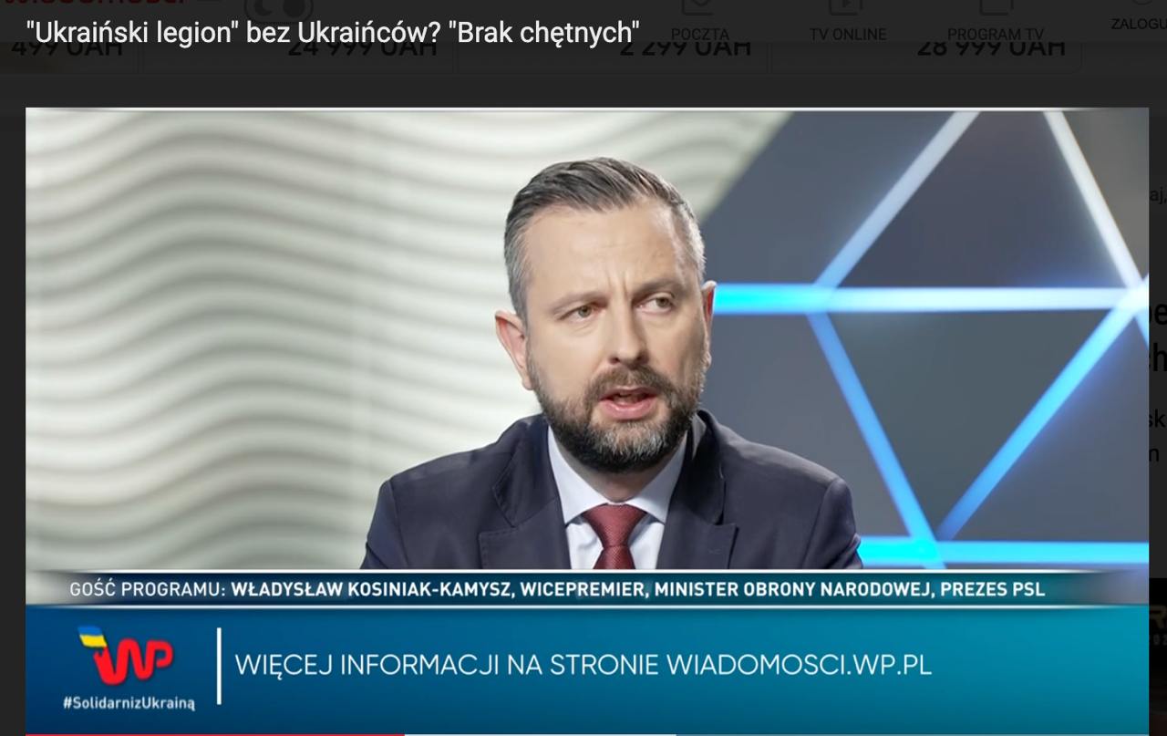 13:16 Среди украинцев за границей все еще не нашлось достаточно желающих для формирования Украинского легиона, заявил польский министр нацобороны Владислав Косиняк-Камыш в эфире местного ТВ.