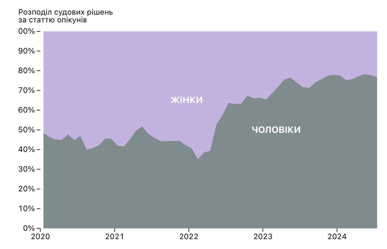 За 2023 и неполный 2024 года было вынесено 13 тыс. судебных решений, в 80% случаев уход возлагался на мужчин.
