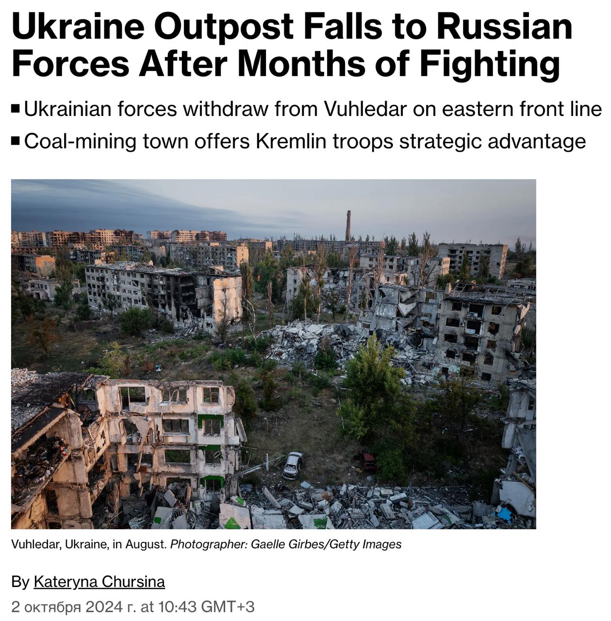 "Россия взяла под контроль стратегически важный город Угледар", - говорится в статье.
