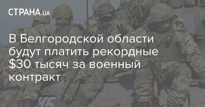 Рекордные три миллиона рублей (чуть более 30 тысяч долларов) будут выплачивать в Белгородской области РФ тем, кто подписал контракт для участия в войне в Украине.