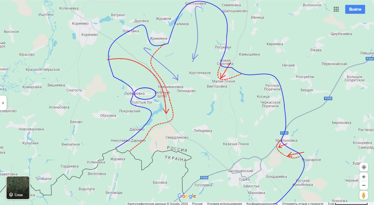 Во-первых, уже упомянутый Коренево - Зеленый Шлях. Второй удар - на Малую Локню, за которую долгое время шли бои, после которых россияне оставили село. Теперь, как утверждается, они снова в него вошли. Третий удар - к северо-востоку от Суджи.