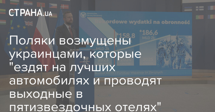"Дело в том, что наше общество очень возмущено видом молодых людей из Украины, которые ездят на лучших автомобилях и проводят выходные в пятизвездочных отелях. И это несправедливо по отношению к полякам, которые вносят свой вклад в здравоохранение, льготы, образование, поставки оружия и другую помощь", - сказал чиновник.