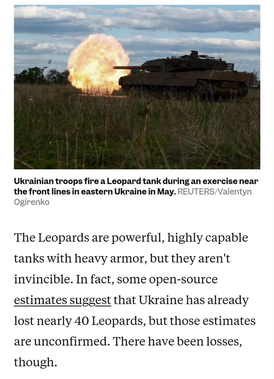 Как пишет американское издание Business Insider, ВСУ потеряли уже 40 таких танков (уточняя, что официально эти цифры не подтверждены).